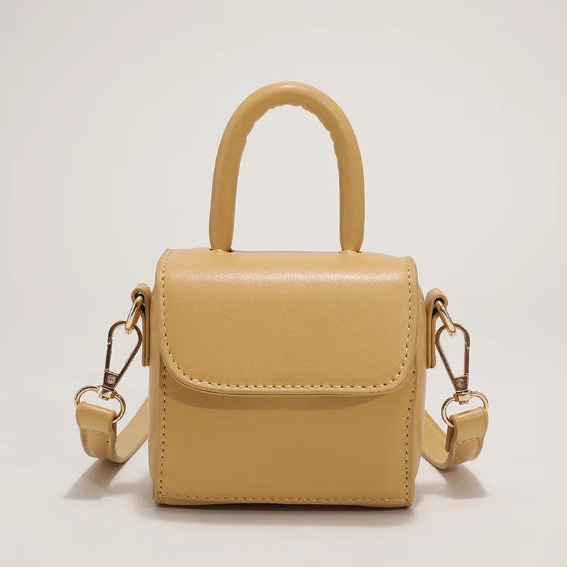 Fashionable chocolate-colored handheld bag perfect for young fashionistas. Ideal for carrying lipstick and other essentials.