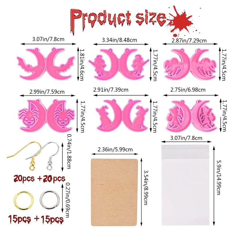 Create spooky Halloween jewelry with these resin molds. Includes earring hooks and plastic bags for crafting.
