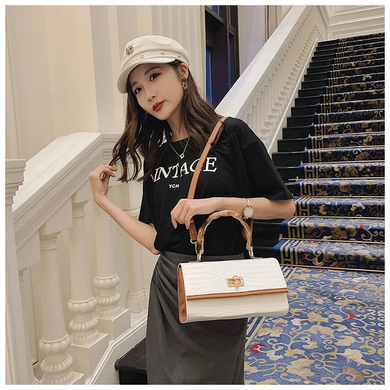 This stylish handheld crossbody bag features a unique stone pattern design, perfect for girls on the go.