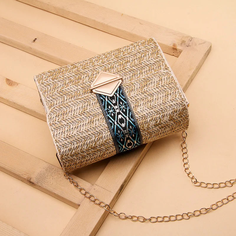 This European and Western style straw bag is perfect for a day at the beach or a casual outing. It features a chic chain design and versatile look.