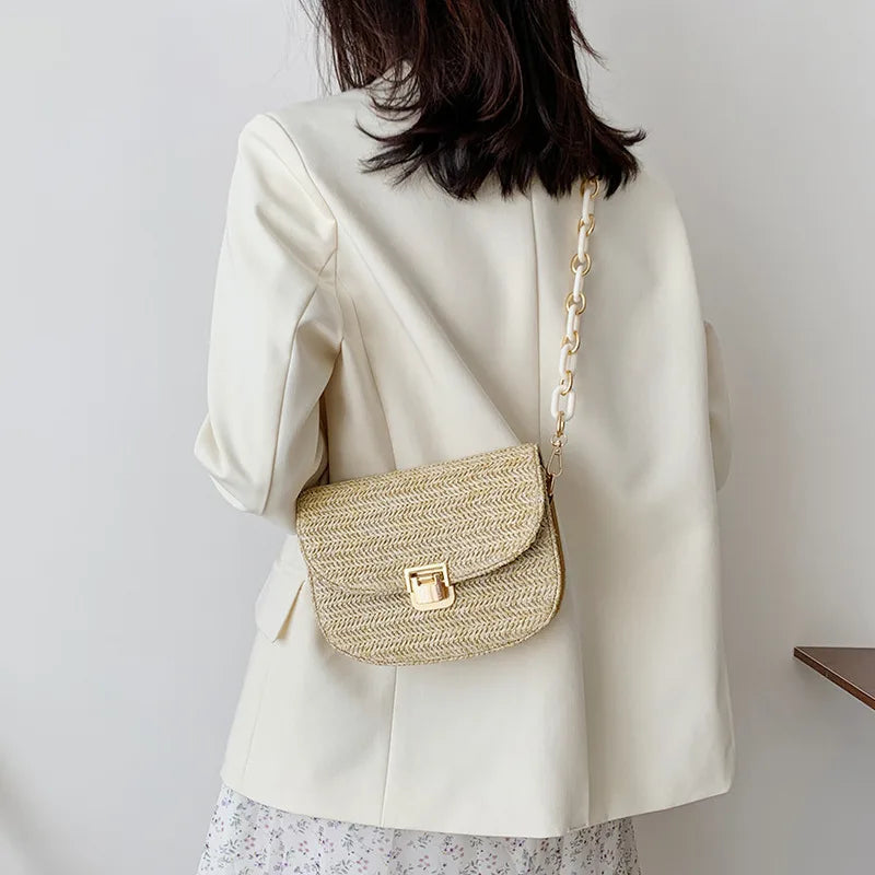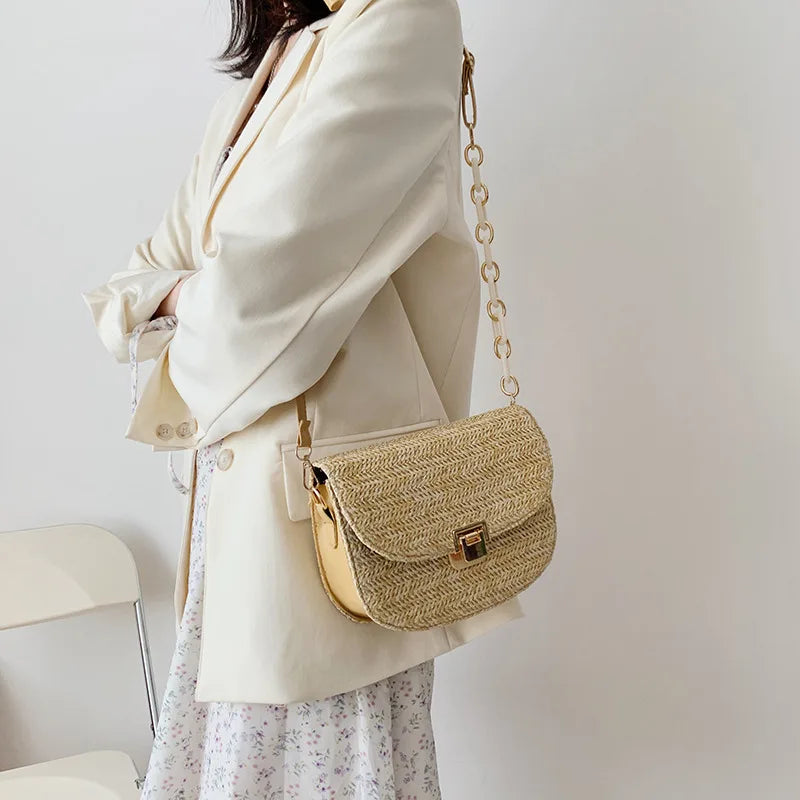 Straw Beach Bag Vintage Woven Shoulder Bag Ladies Crossbody Messenger Bag