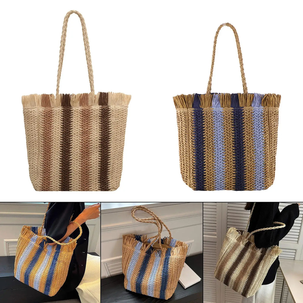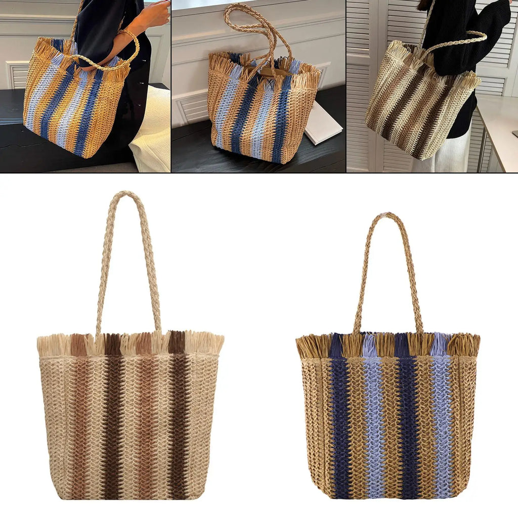 Straw Handbag Shoulder Bag Beach Boho Woven Bag Vacation