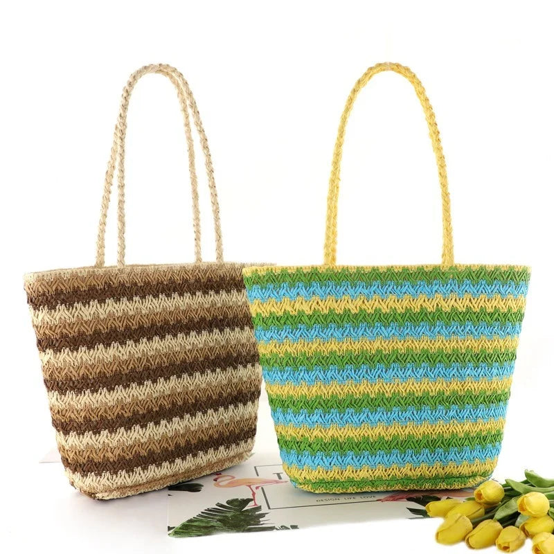 - Handwoven straw material for durability and eco-friendly style