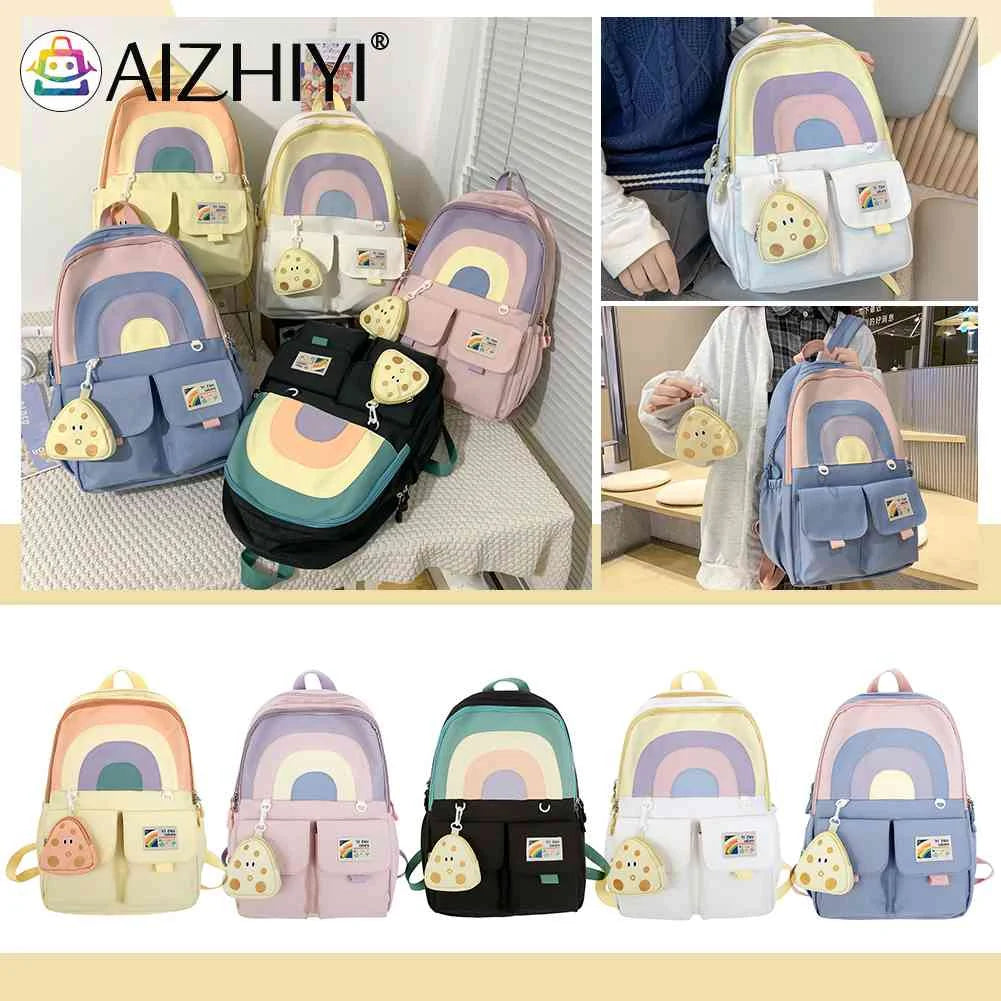 Student Bookbag School Backpack with Pendant Large Capacity Soft Multi-pockets