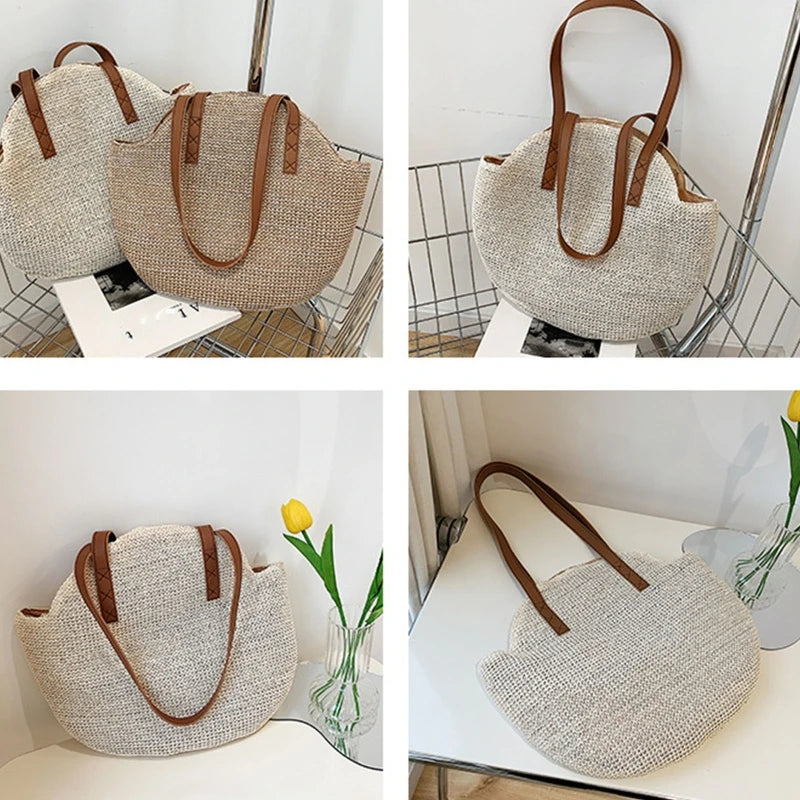 Stay stylish and organized with this large straw woven shoulder bag, perfect for summer beach resorts and travel.