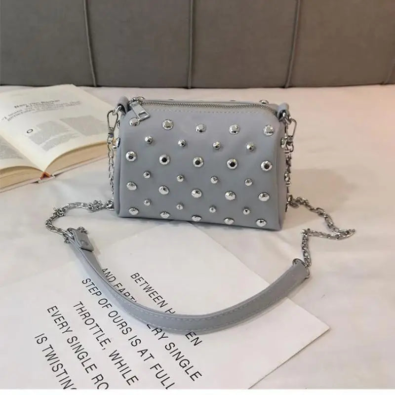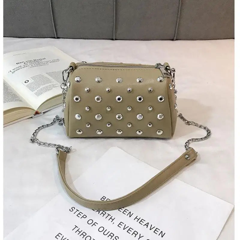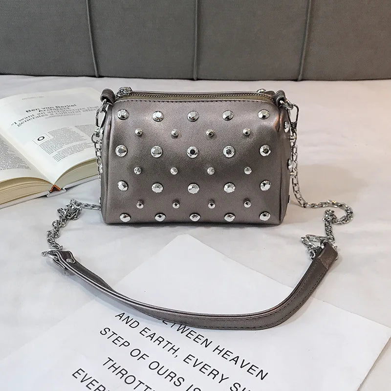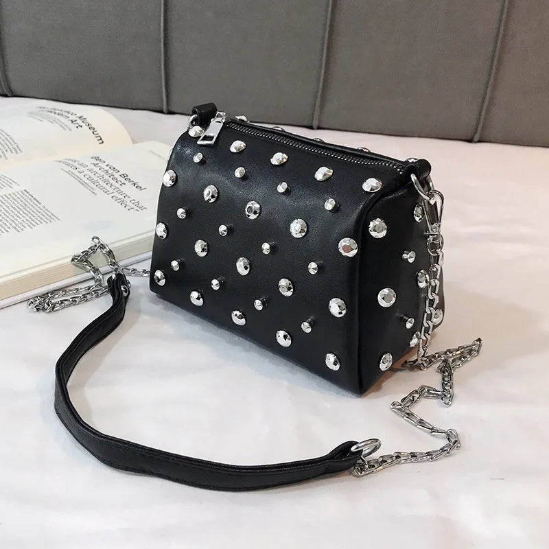 Summer Lady Leather Messenger Bag Chain Small Rivet Handbags