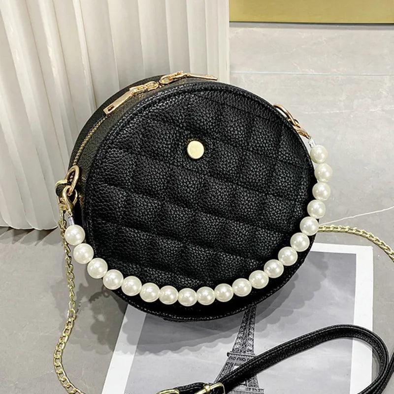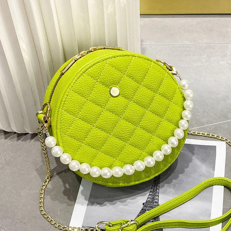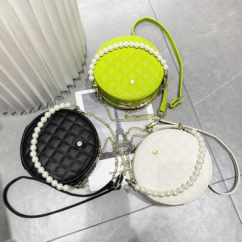 This stylish small round bag is perfect for the summer look. It features a trendy net red design with diamond embellishments for an eye-catching appeal.