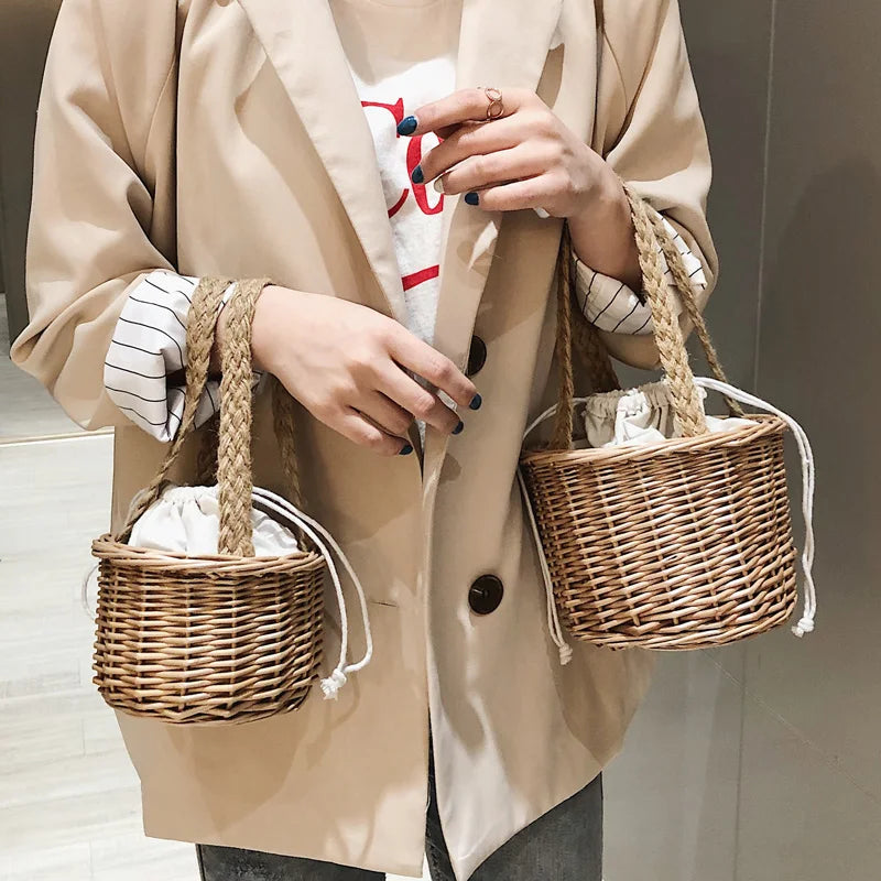 This rural wind woven draw belt handbag is perfect for summer outings. Made with plaited details and a drawstring closure, this straw bag exudes a holiday vibe.