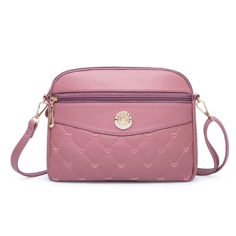 Stay stylish with this soft leather handbag that's perfect for summer. The messenger shoulder crossbody design is comfortable and practical, with a casual zipper closure.
