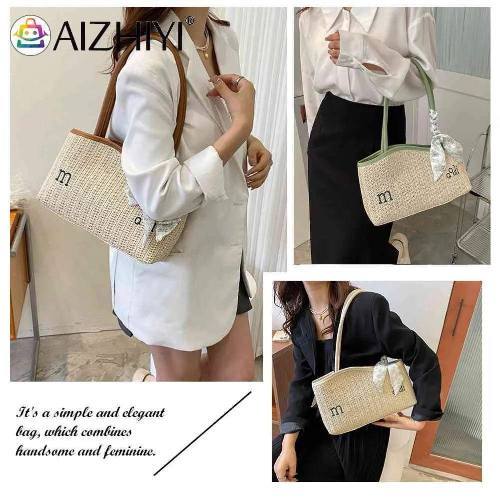 Summer Straw Shoulder Bag Beach Woven Tote Handbag