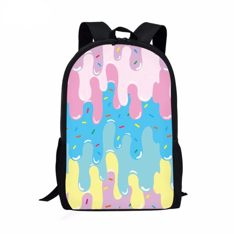 Adorable and durable backpack with a fun strawberry ice cream pattern, perfect for camping or school.