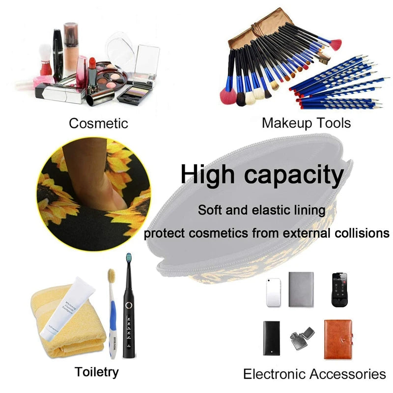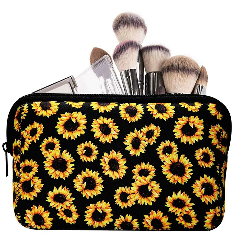 Sunflower Floral Makeup Bag Waterproof Neoprene Travel Storage Pouch