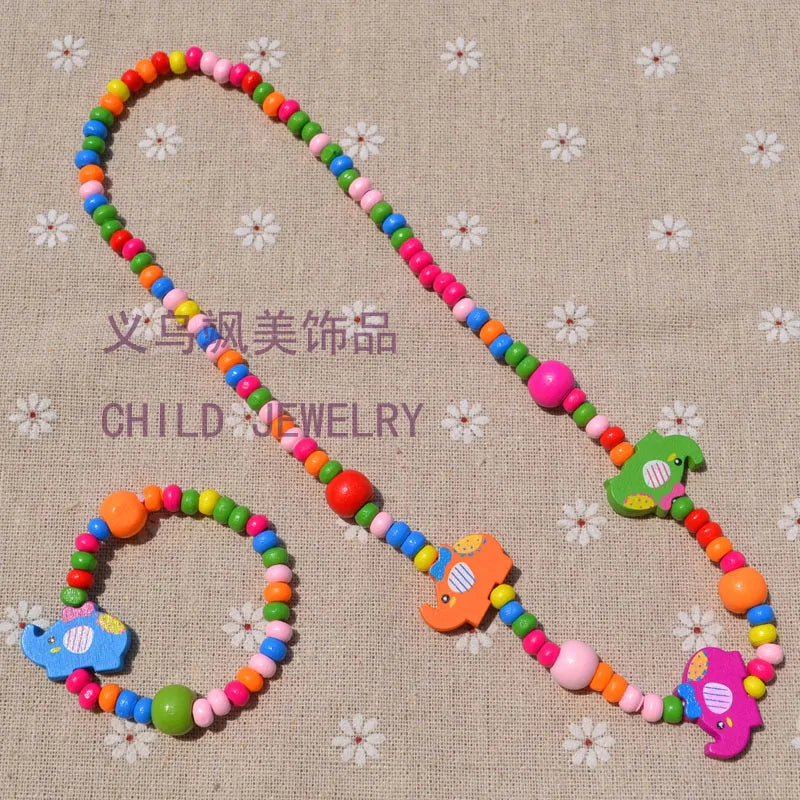 Sweet Girl's Cartoon Jewelry Set: Wooden Necklace & Bracelet