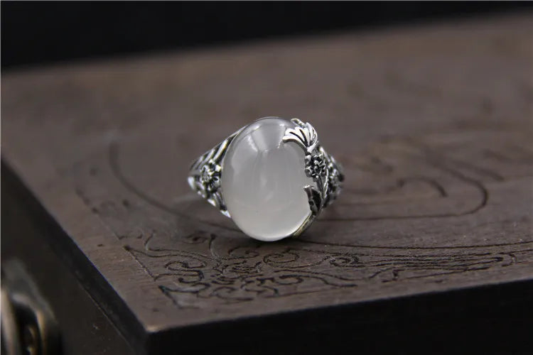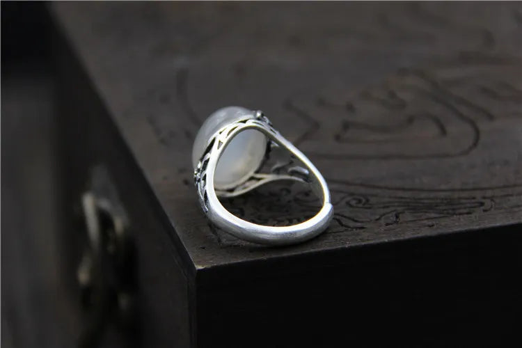Thai Silver Carved Stone Ring, Natural Stone Pulp