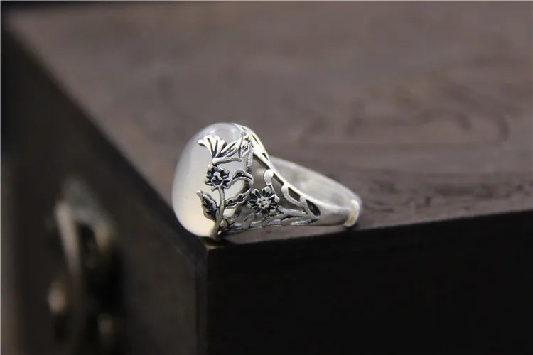 Elegant S925 Thai silver ring with ancient patterns, crafted from natural stone pulp. Perfect for restoring vintage jewelry.