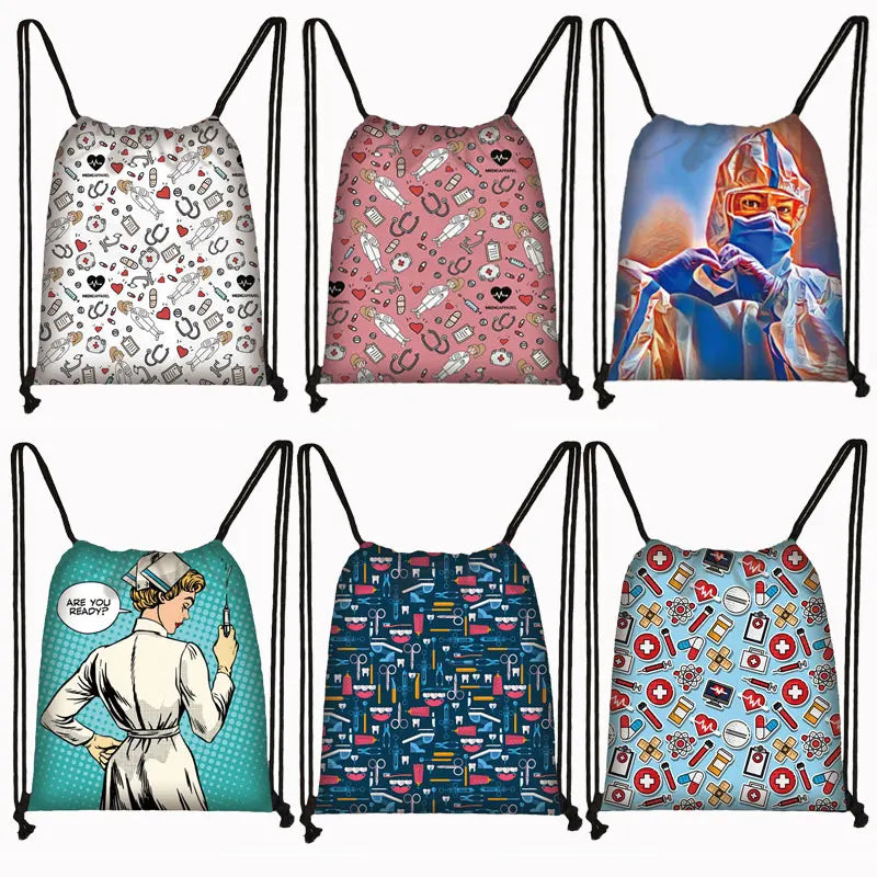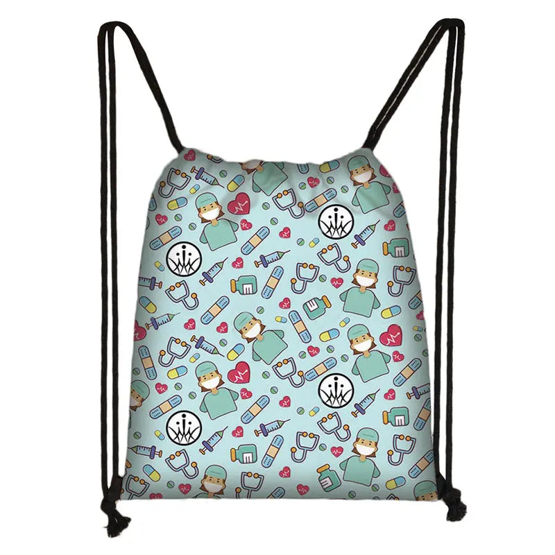This drawstring bag with 'Thank You Doctor' print is perfect for nurses, girls, shopping, travel, and more. It's a portable storage bag with a shoes holder.