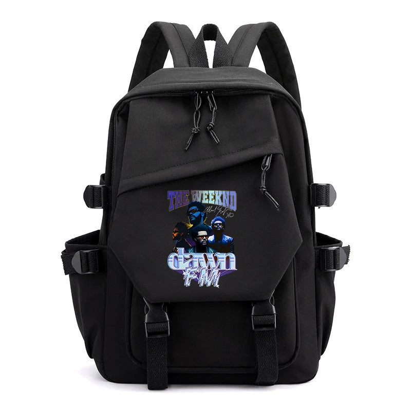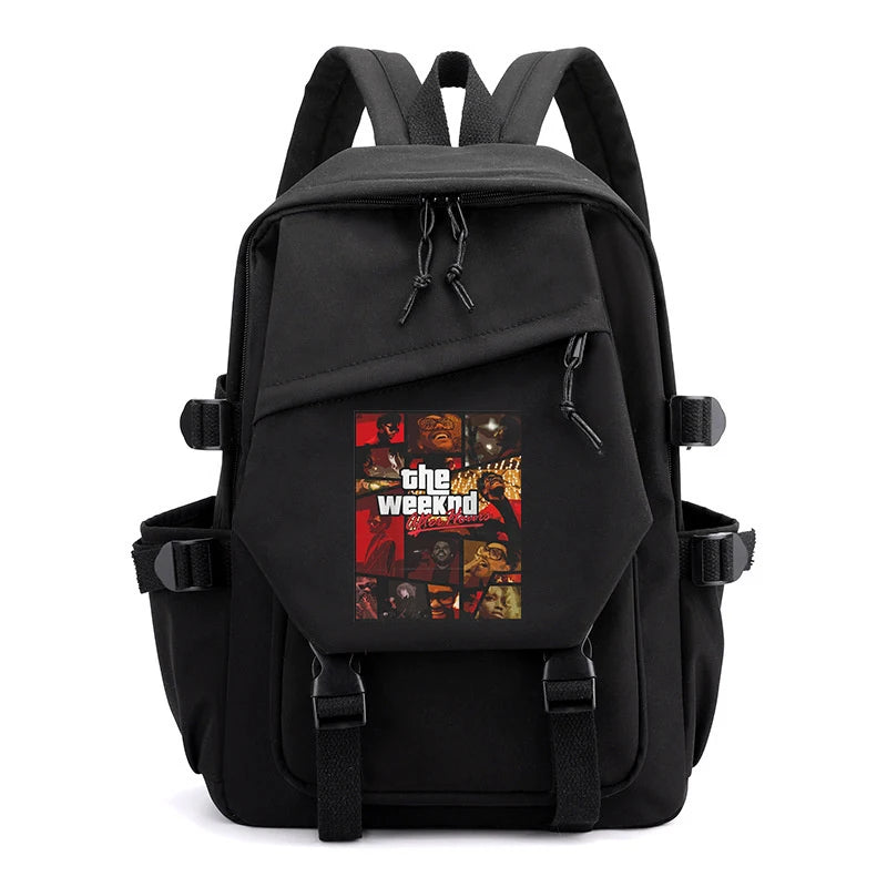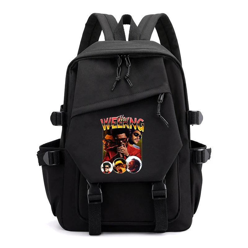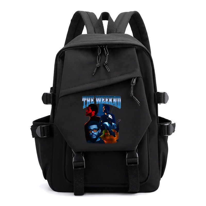 Stay stylish with this high-capacity backpack featuring The Weeknd print. Perfect for girls and boys in school or for daily use.