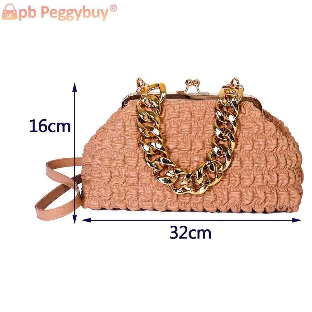 This messenger bag features a thick chain design, pleated plaid pattern, and a soft adjustable strap. Perfect for evening banquets and casual outings.