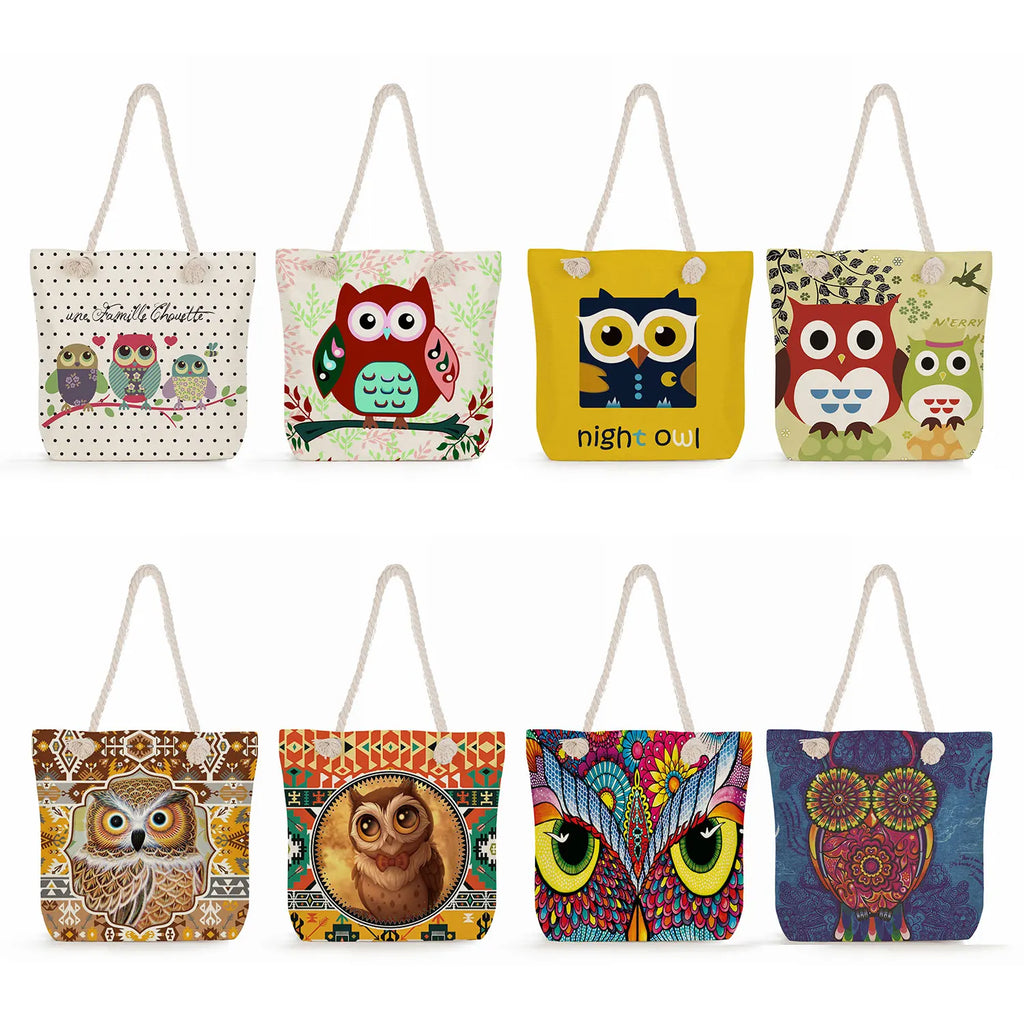 Description:Stay stylish with this durable reusable beach shoulder bag featuring an owl print. Perfect for shopping or a day at the beach.Features: Spacious lady large capacity bag Made of thick rope linen for durability Reusable and eco-friendly shopping bag Adorable owl print design Perfect for beach outings or shopping trips...