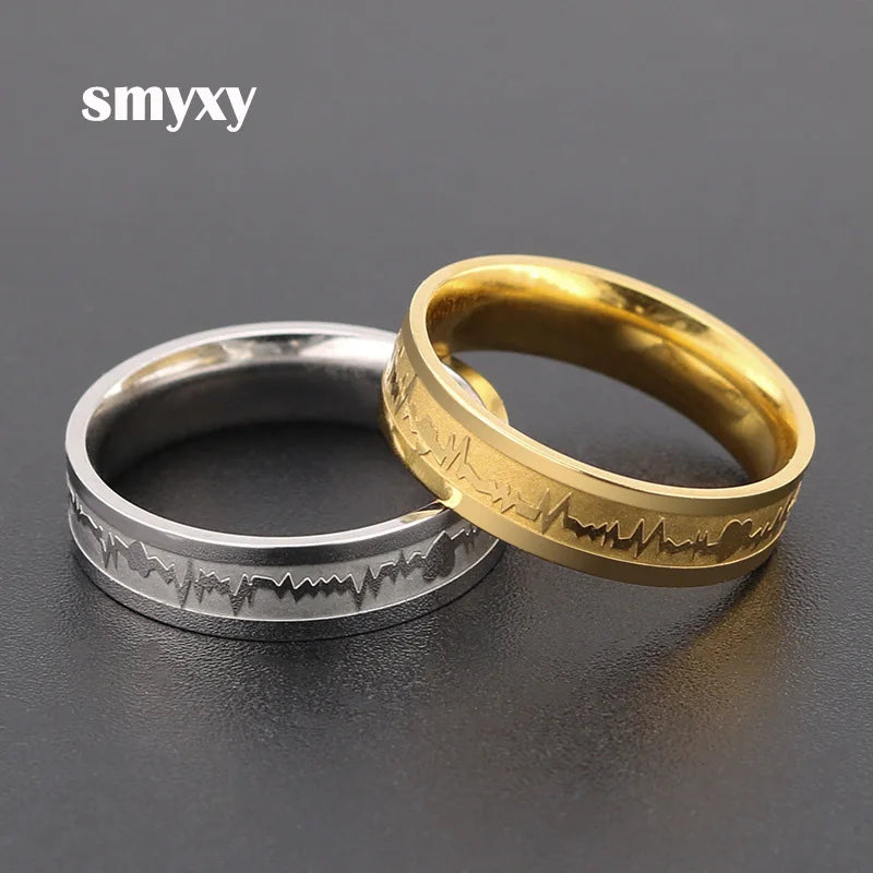 Titanium Steel Electrocardiogram Wave Ring Wedding Couples Rings