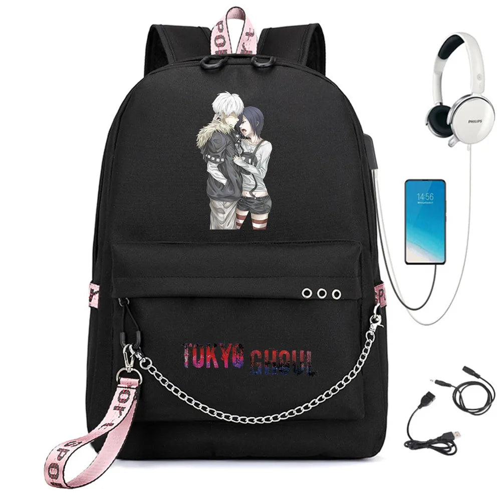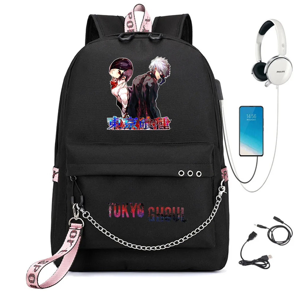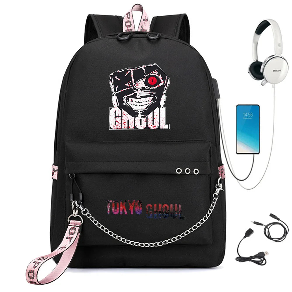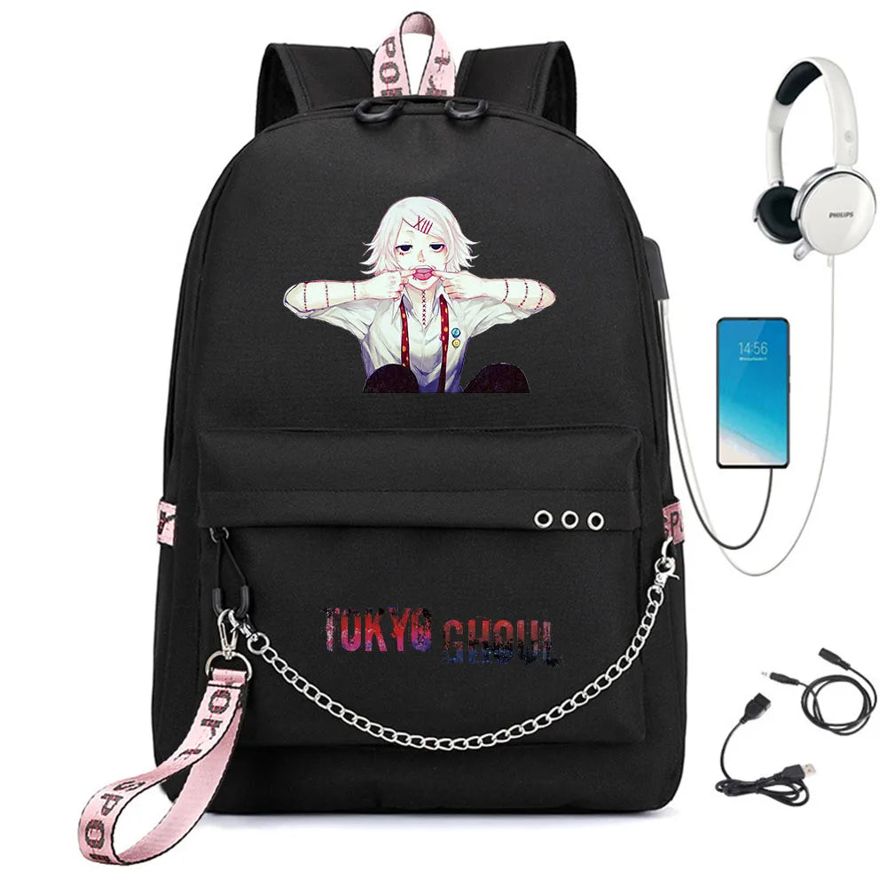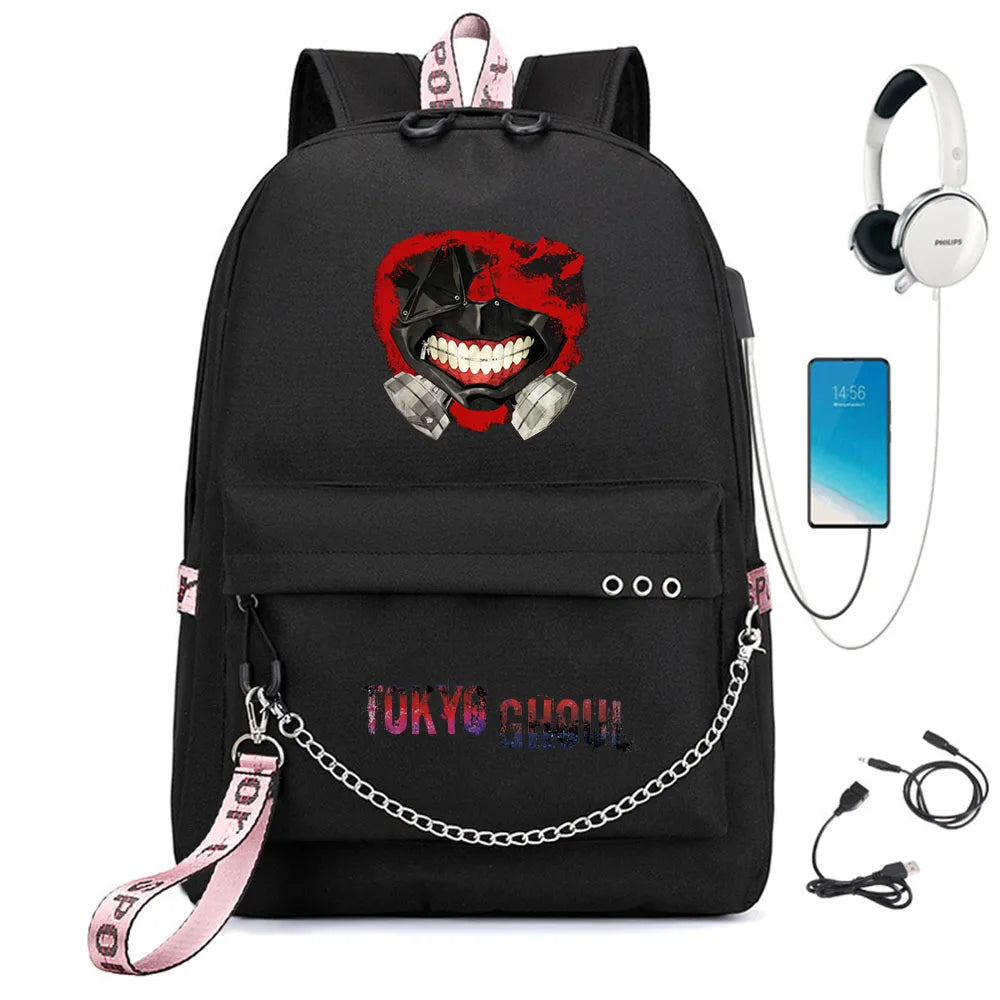 Tokyo Ghoul Nylon Backpack USB Charge Schoolbag Cartoon Teenger Travel Laptop Ba