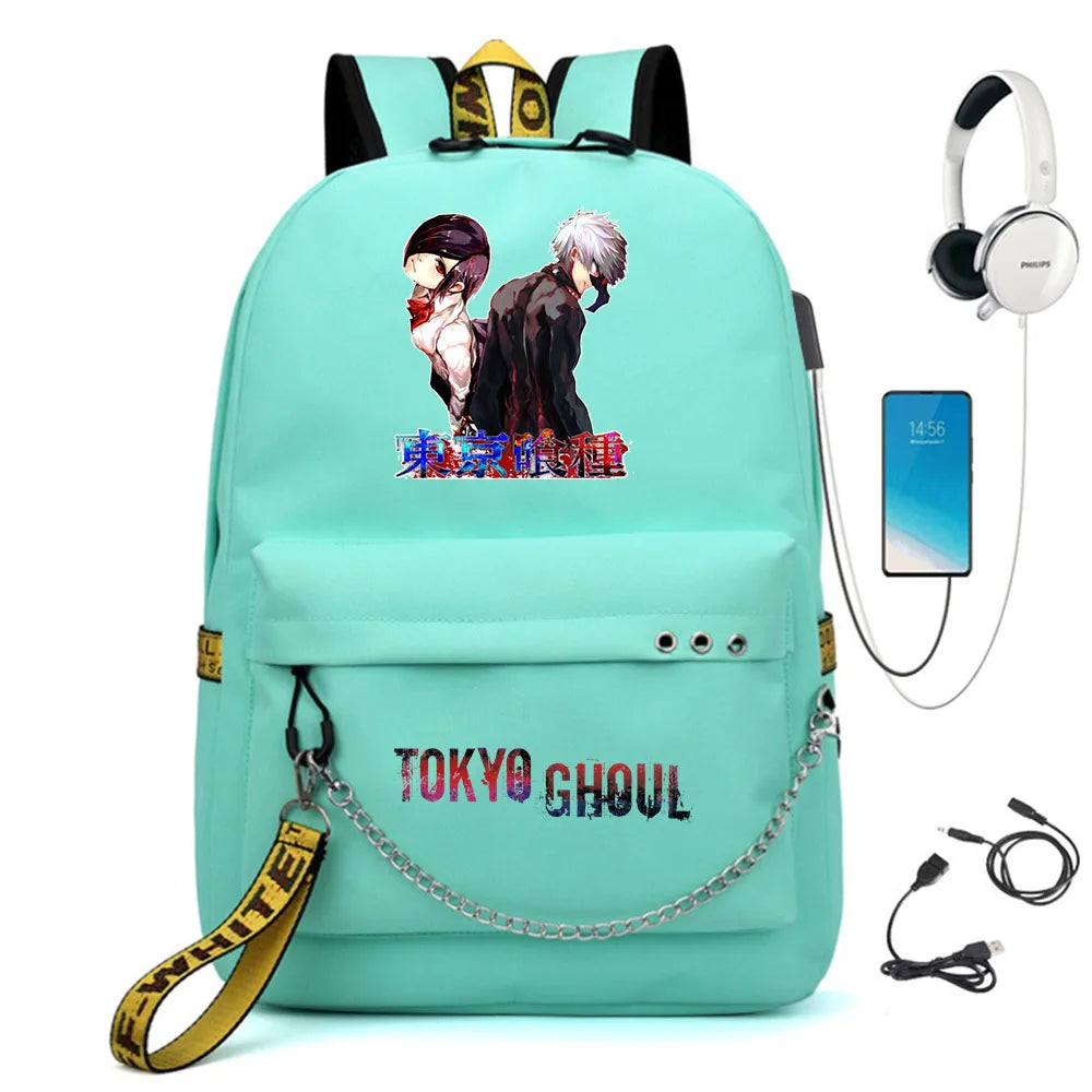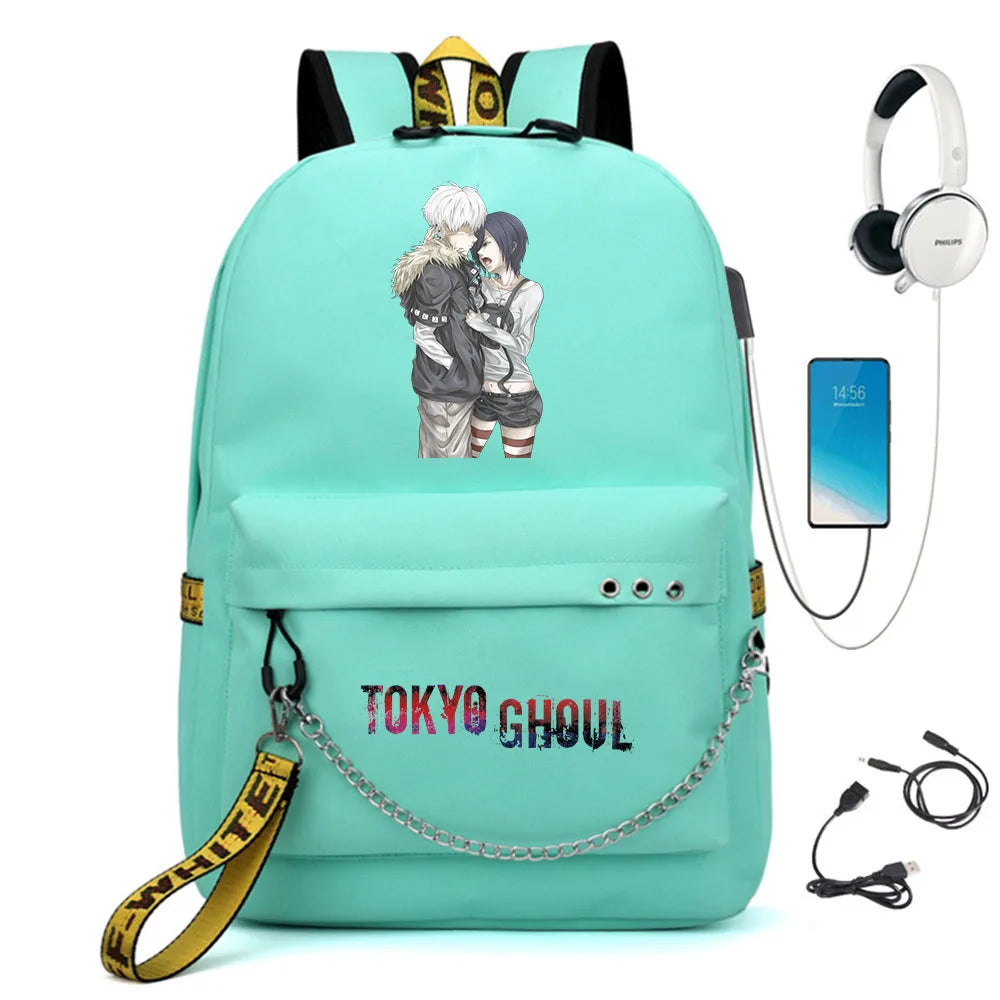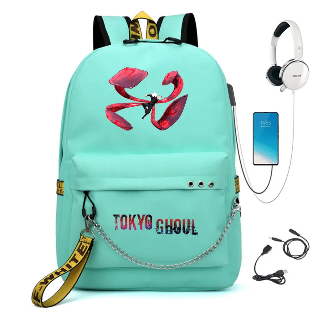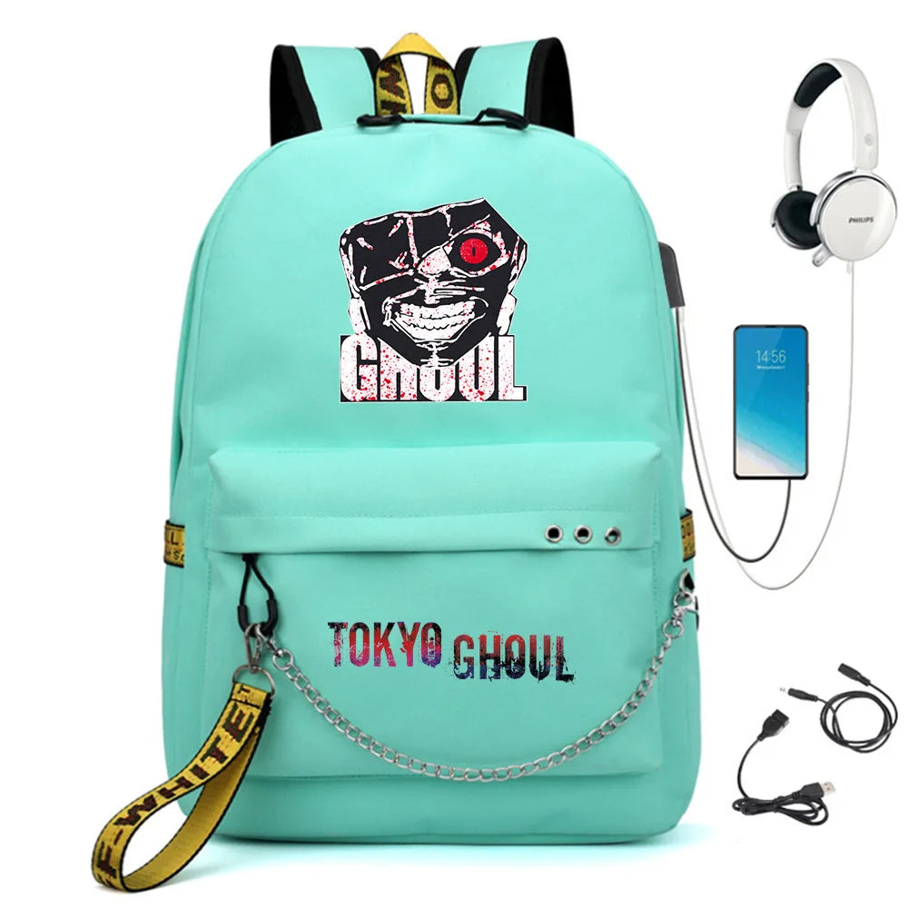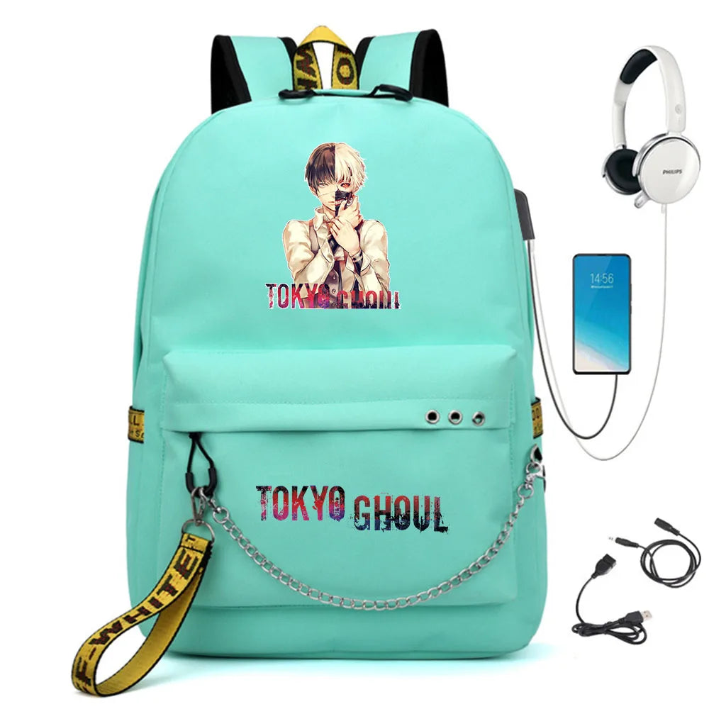 Tokyo Ghoul Nylon Backpack USB Charge Schoolbag Student Teenager Knapsack