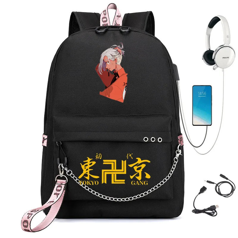 Tokyo Revengers Backpack USB Charging Girls School Bag