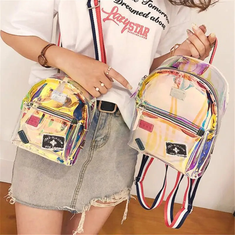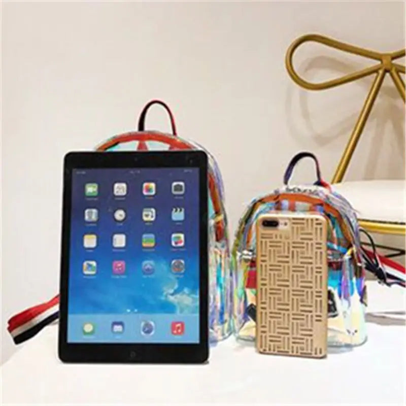 Trendy transparent backpack with unique shape design, perfect for teenage girls. A stylish and practical gift for a sweet girl.