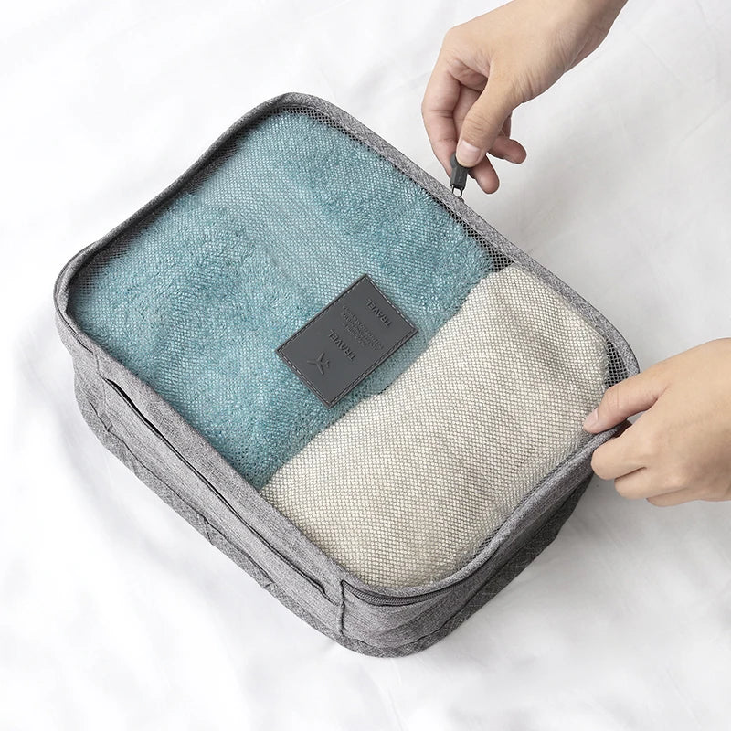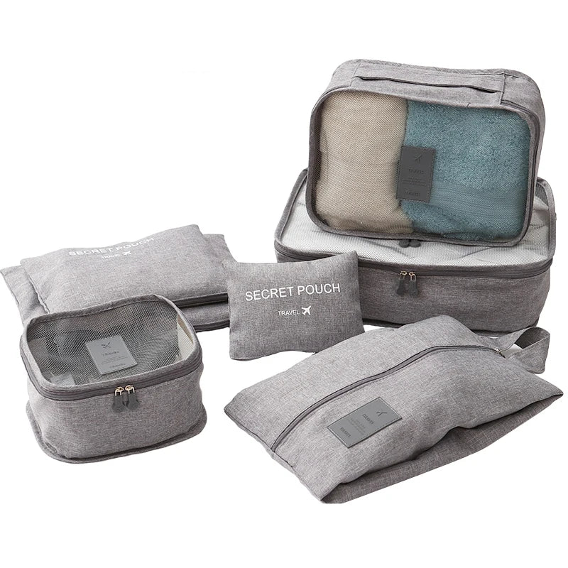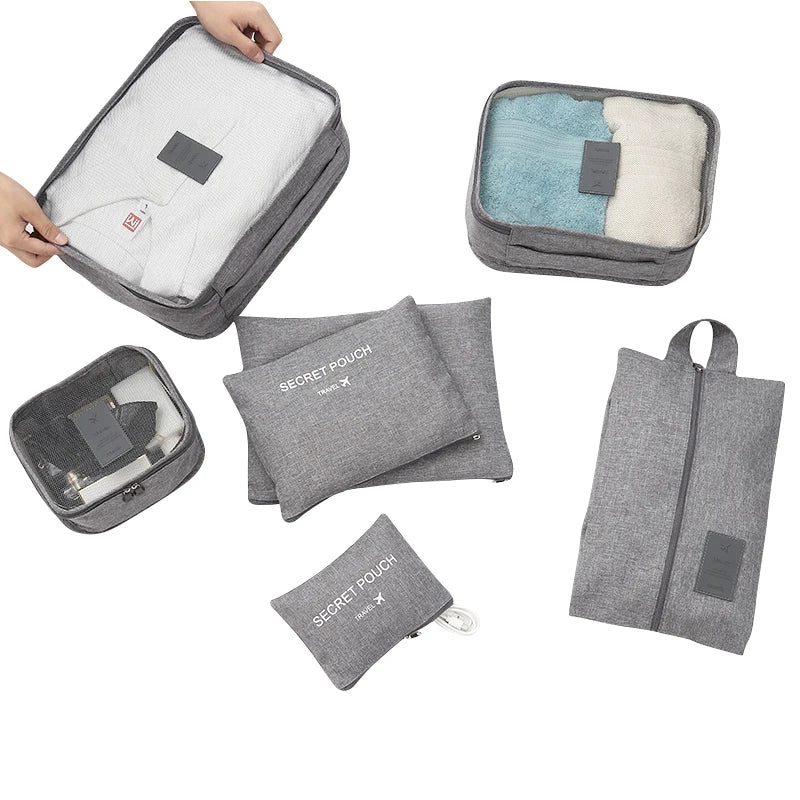 Stay organized while traveling with this seven-piece travel bag set. Waterproof and durable, it offers convenient storage for your clothes and underwear.