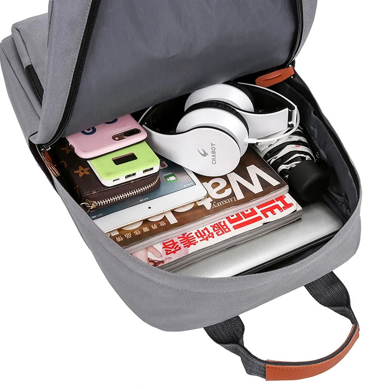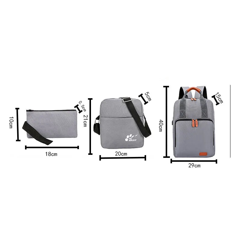 This three-piece backpack set is perfect for school and travel. It is made of wear-resistant material and includes a USB port for easy charging.