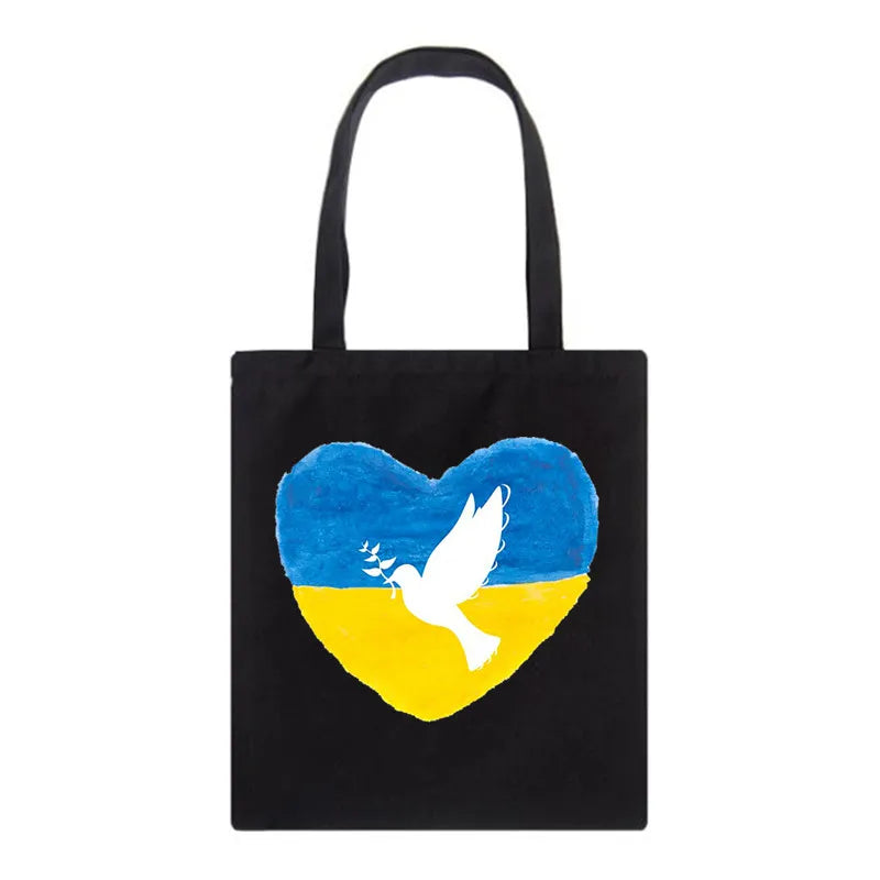 Get this stylish Large Capacity Shopping Shopper Hand Bag featuring a vintage Ukrainian print with the flag of Ukraine and sunflower. Made of durable canvas, this bag is perfect for daily use or shopping.