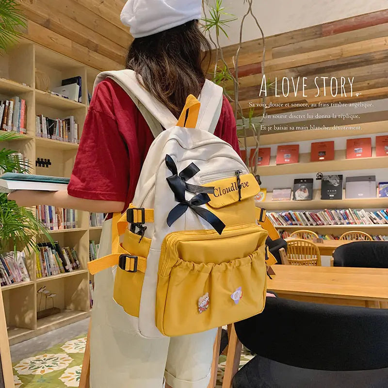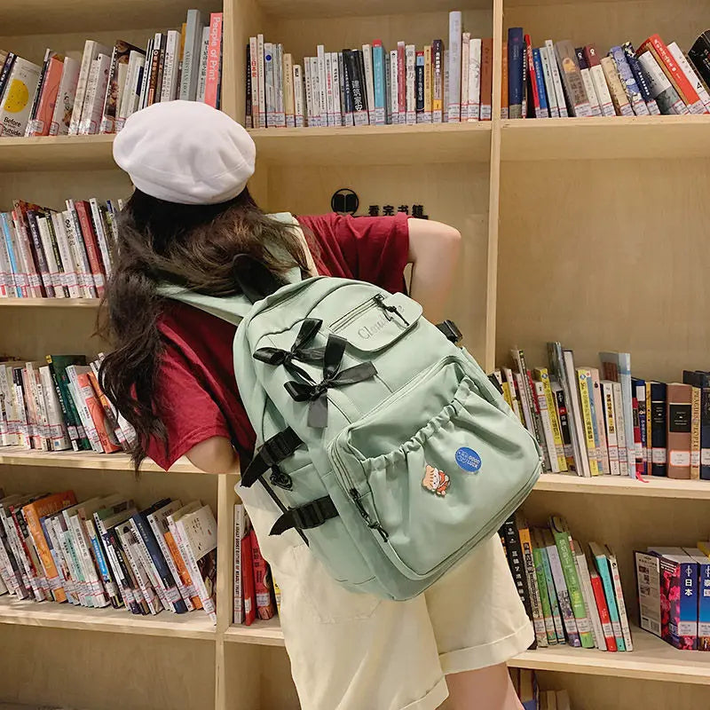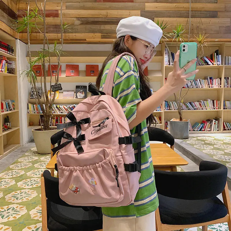 This backpack is perfect for high school girls with its trendy Ulzzang style and sturdy canvas material.