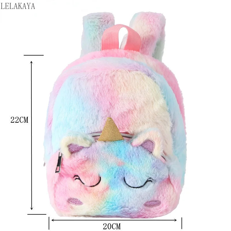 Unicorn Backpack Soft Fur Schoolbag for Kids