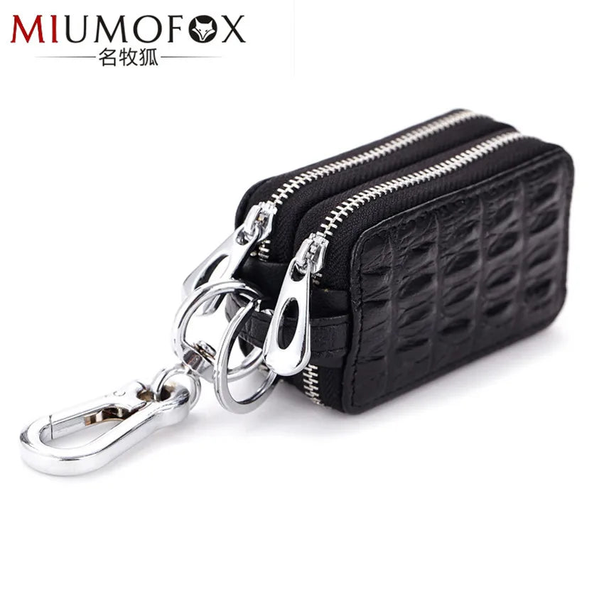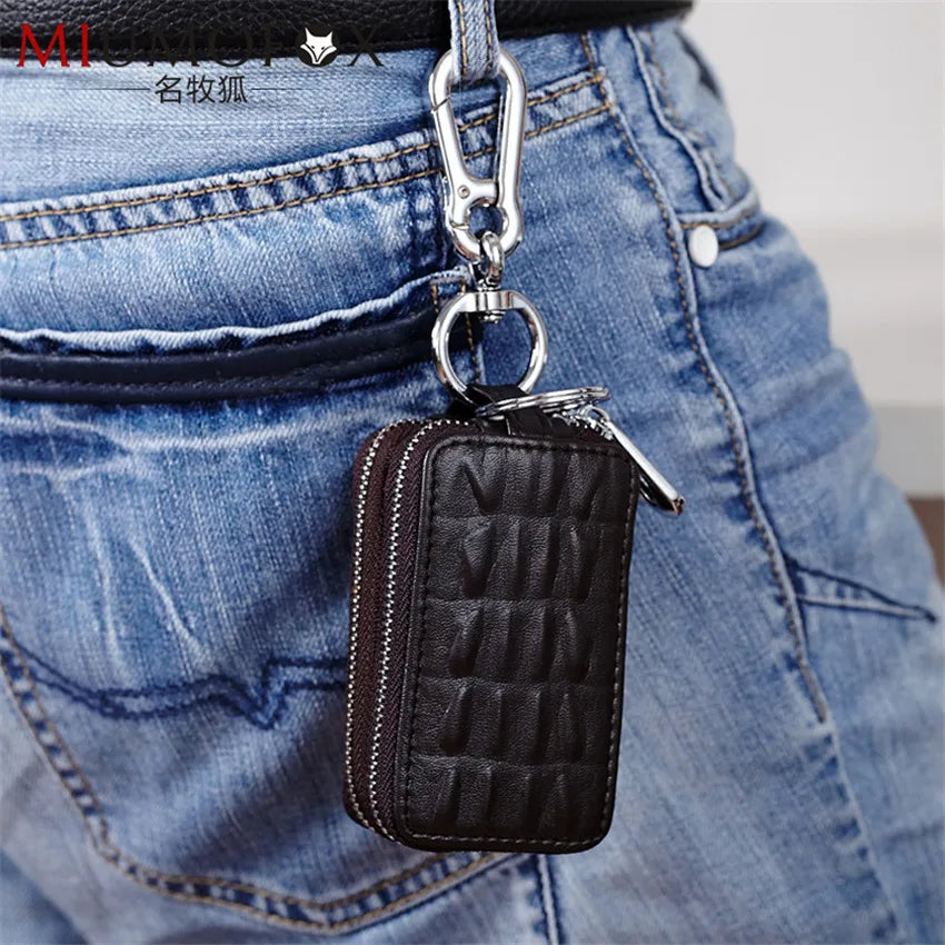 Keep your keys organized and secure with this stylish alligator-grained leather key wallet. Perfect for both car and house keys.