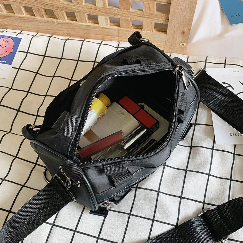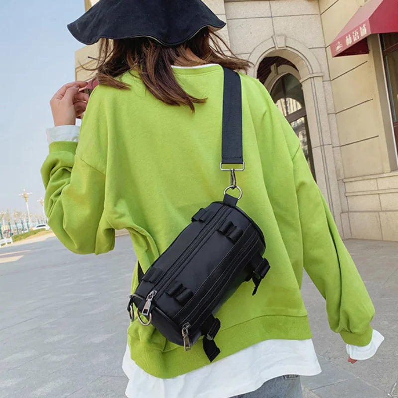 This stylish crossbody bag is perfect for streetwear and hip-hop styles. Made from high-quality PU leather, it is durable and trendy.