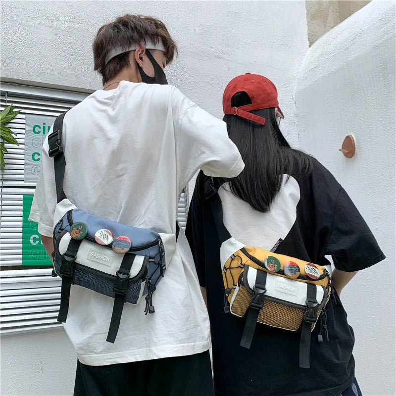 Unisex Hip Hop Drawstring Waist Bag Nylon Chest Bag Korea Messenger