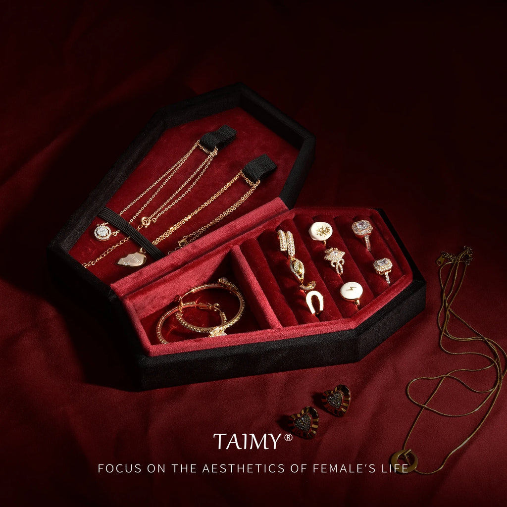 - Velvet Coffin Jewelry Box with 'Til Death' Skull Design