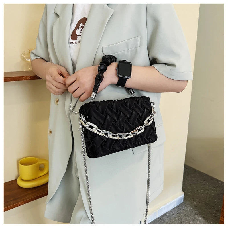 Versatile Chain Crossbody Pleated Handheld Bag Female