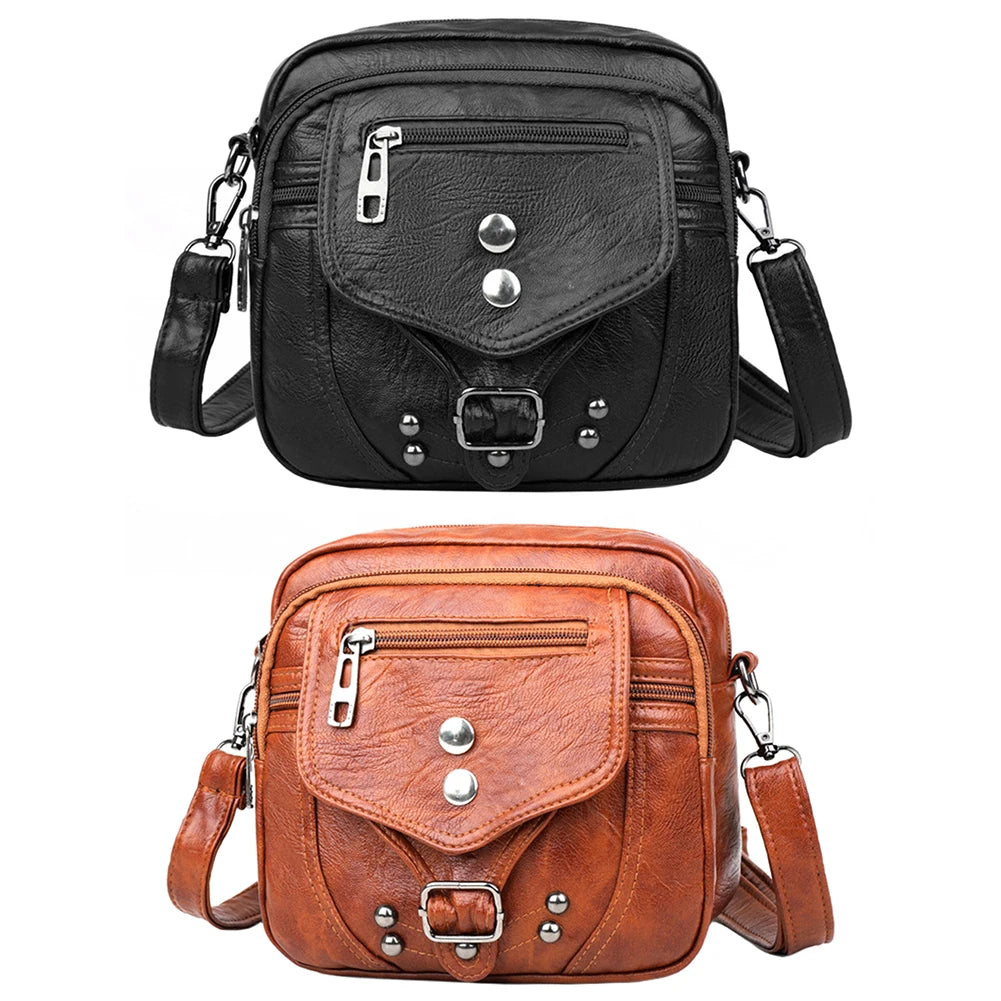 Vintage Crossbody Bag Multifunctional PU Leather Fanny Pack Anti-theft Zipper