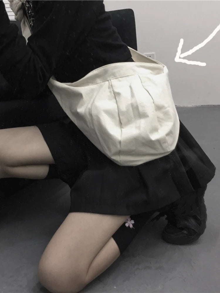 This small fresh Harajuku bag is perfect for students and features a unique knotted design. Made from canvas, it exudes a retro vibe.