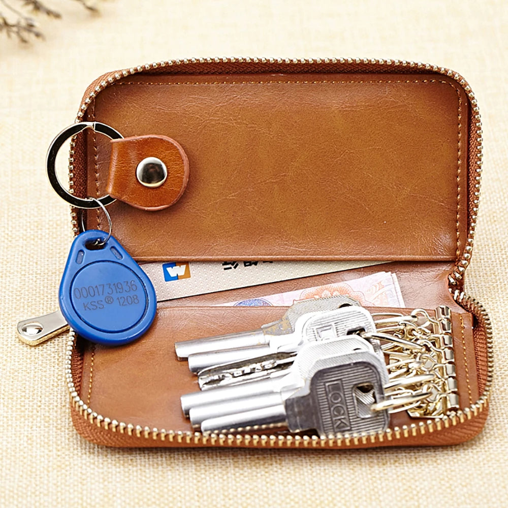 Vintage Leather Clutch Small Key Wallet with Card Purse