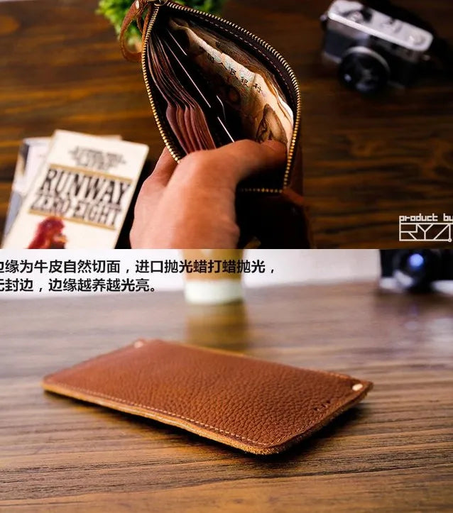 Vintage Leather Long Wallet Bill Bag Full Leather Note Bag Wallet