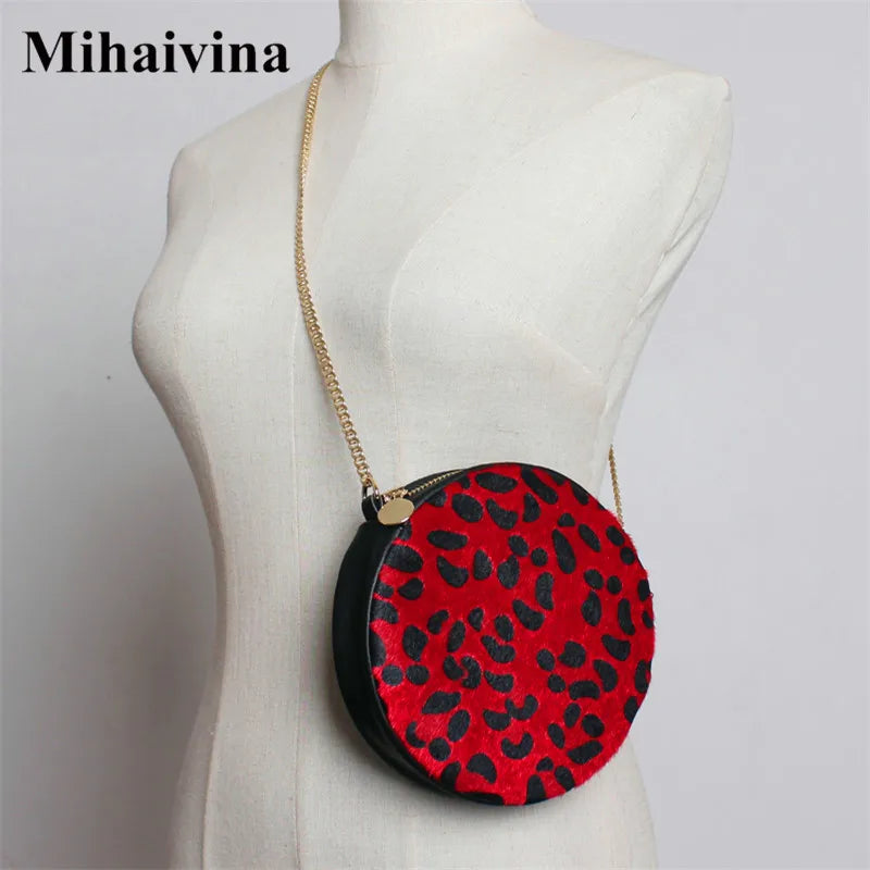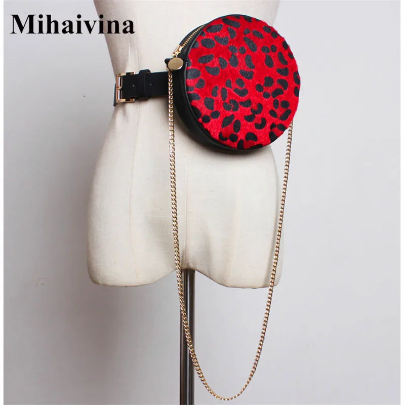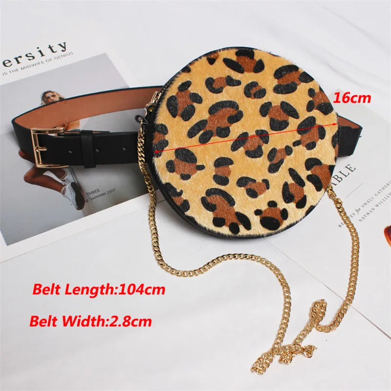 Vintage Leopard Waist Pack Round Waist Bag Chian Shoulder Bags