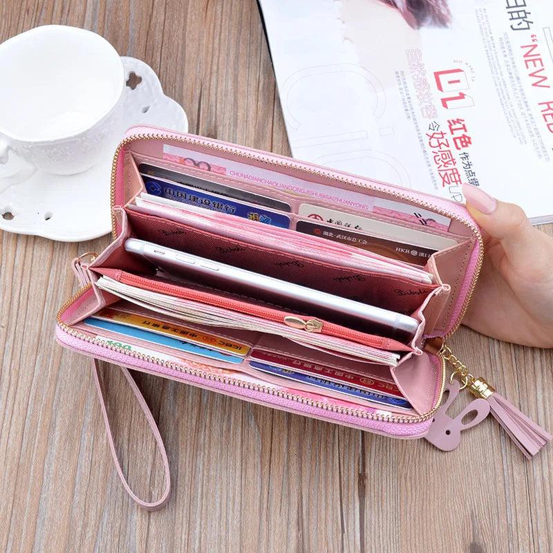 Vintage Long Woman Purse PU Leather Rfid Holder Ladies Purse Retro Zipper