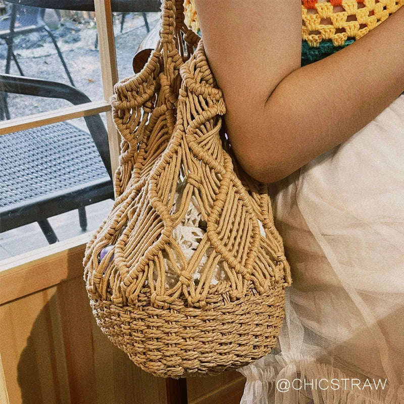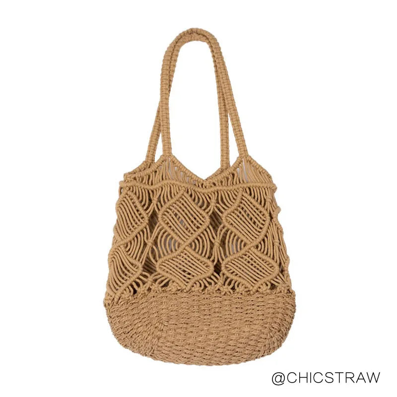 Vintage Macrame Hollow Out Cotton Beach Bag Tote Boho Shoulder Bag