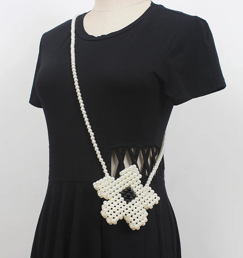 Vintage Mini Pearl Weaving Crossbody Bag with Butterfly Flap
