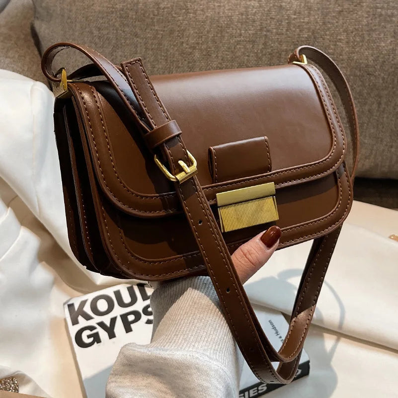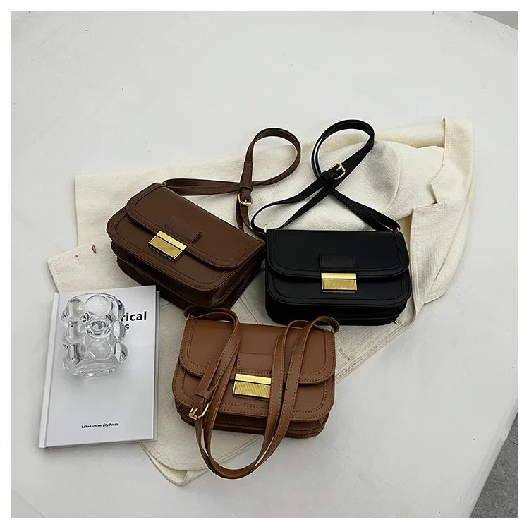 This small shoulder bag exudes high sense with its retro design and metal lock. Perfect for carrying your essentials in style.