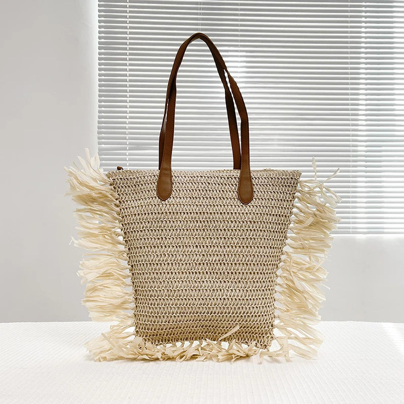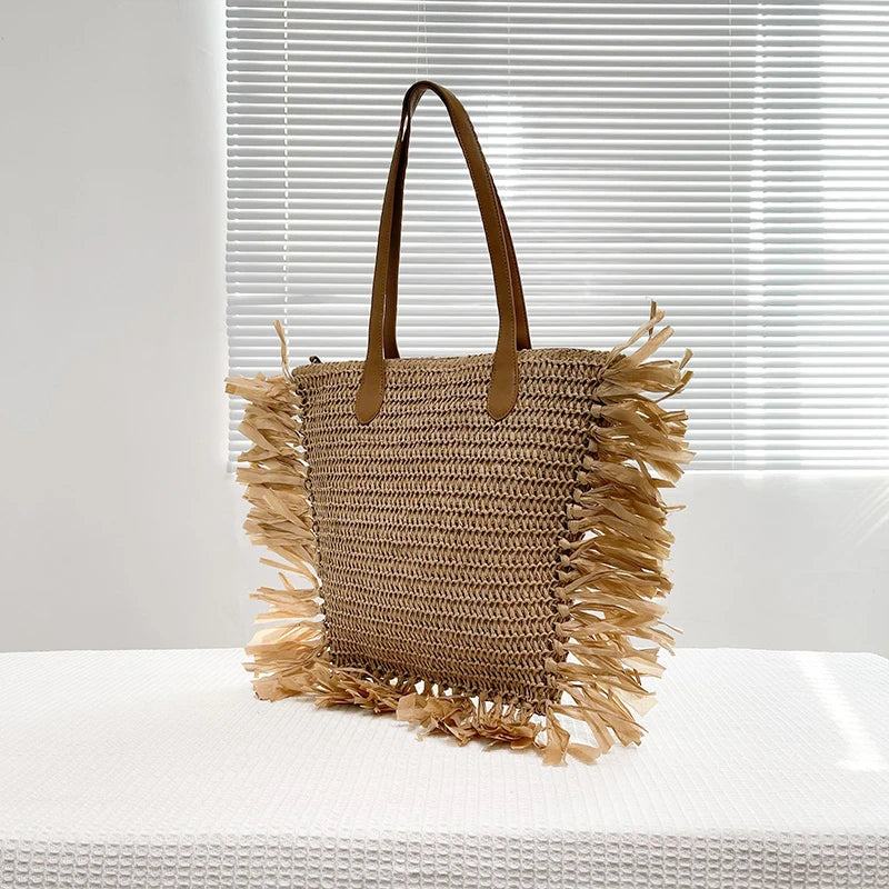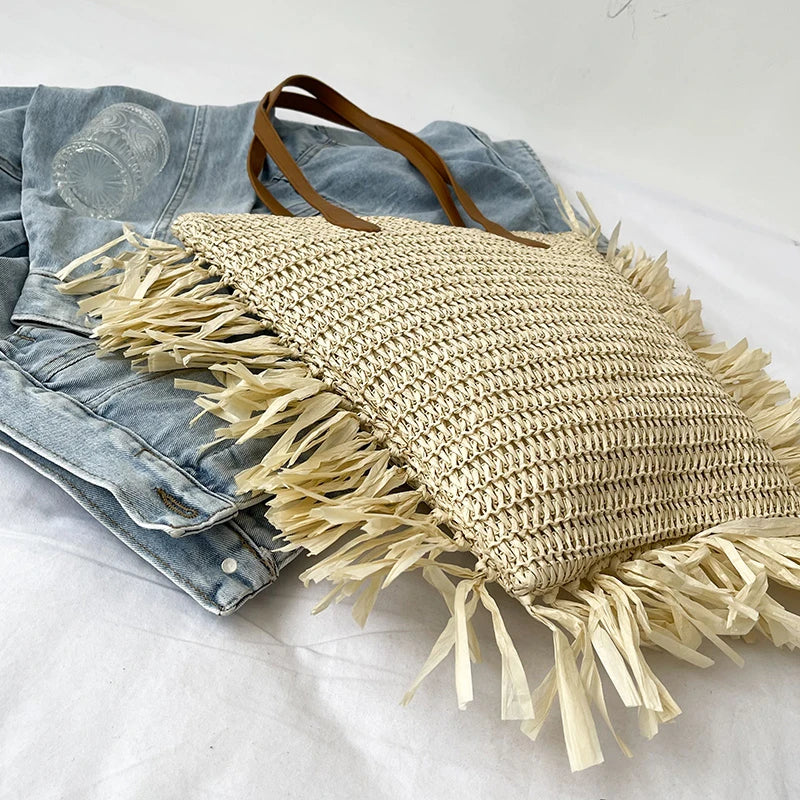 Vintage Round Straw Beach Bag Woven Rattan Bohemian Summer Shoulder Bag