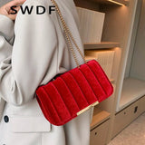 Vintage Velvet Shoulder Bag Small Satchel Crossbody Tote Golden