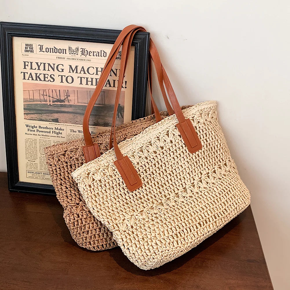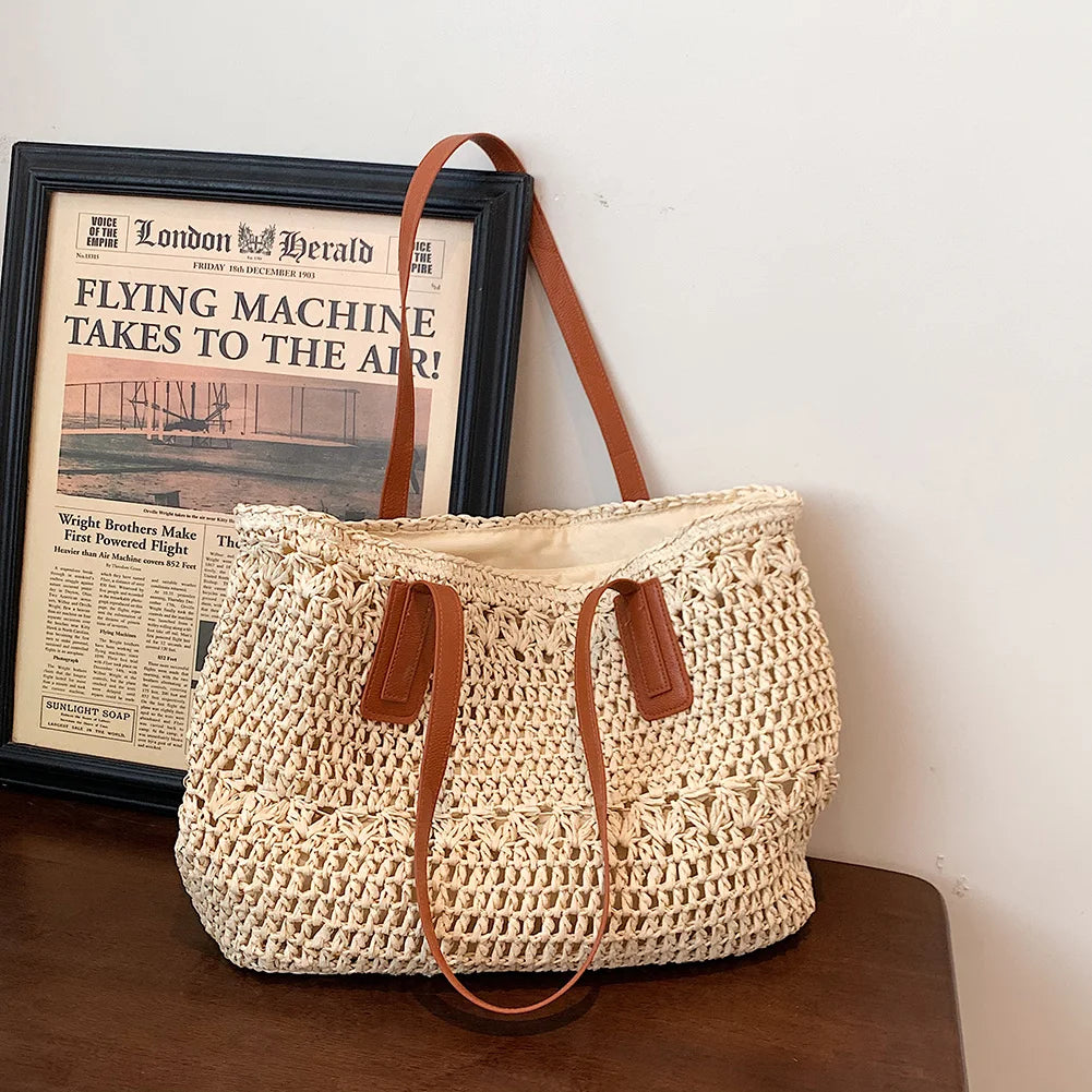 Vintage Woven Shoulder Bag Straw Beach Bohemian Summer Vacation